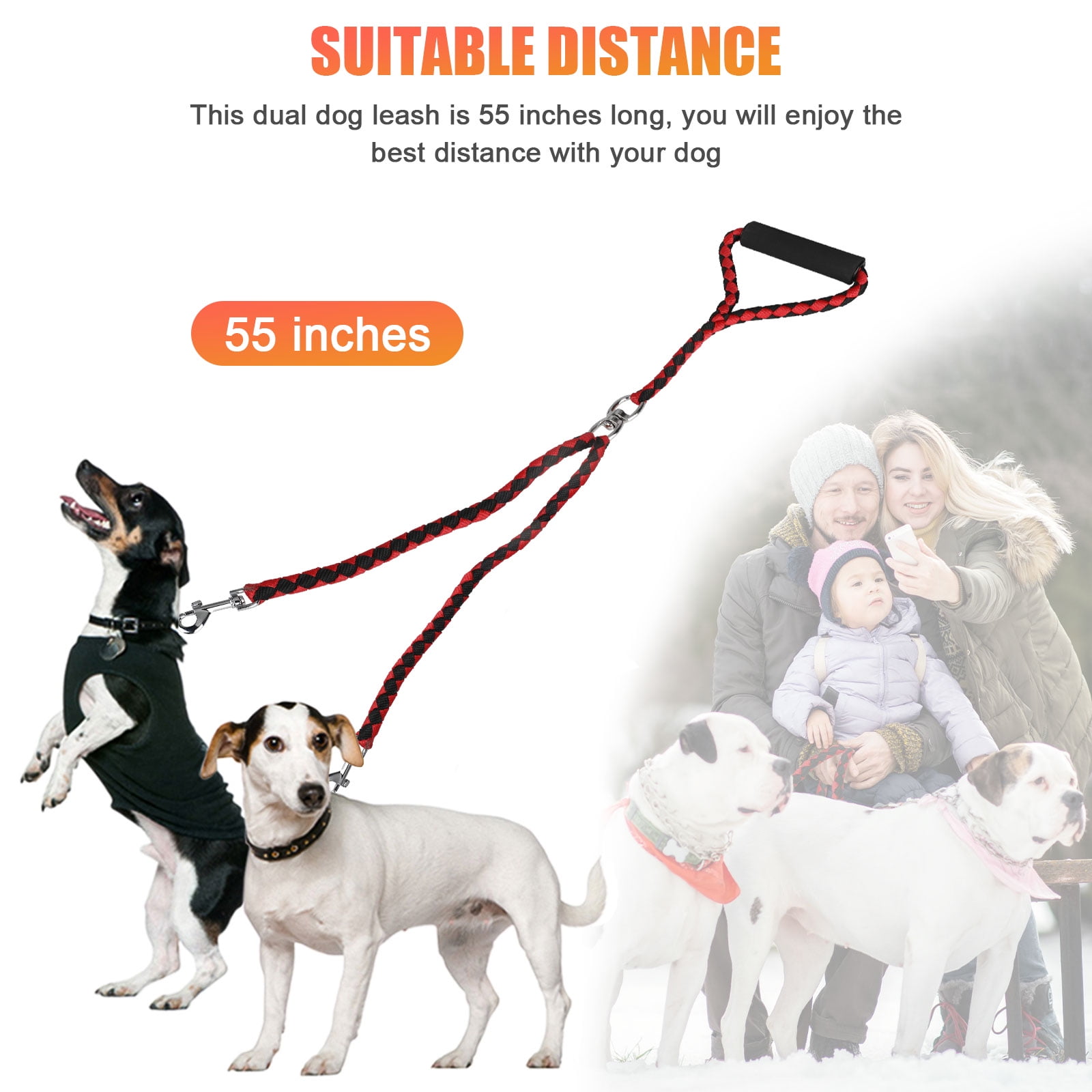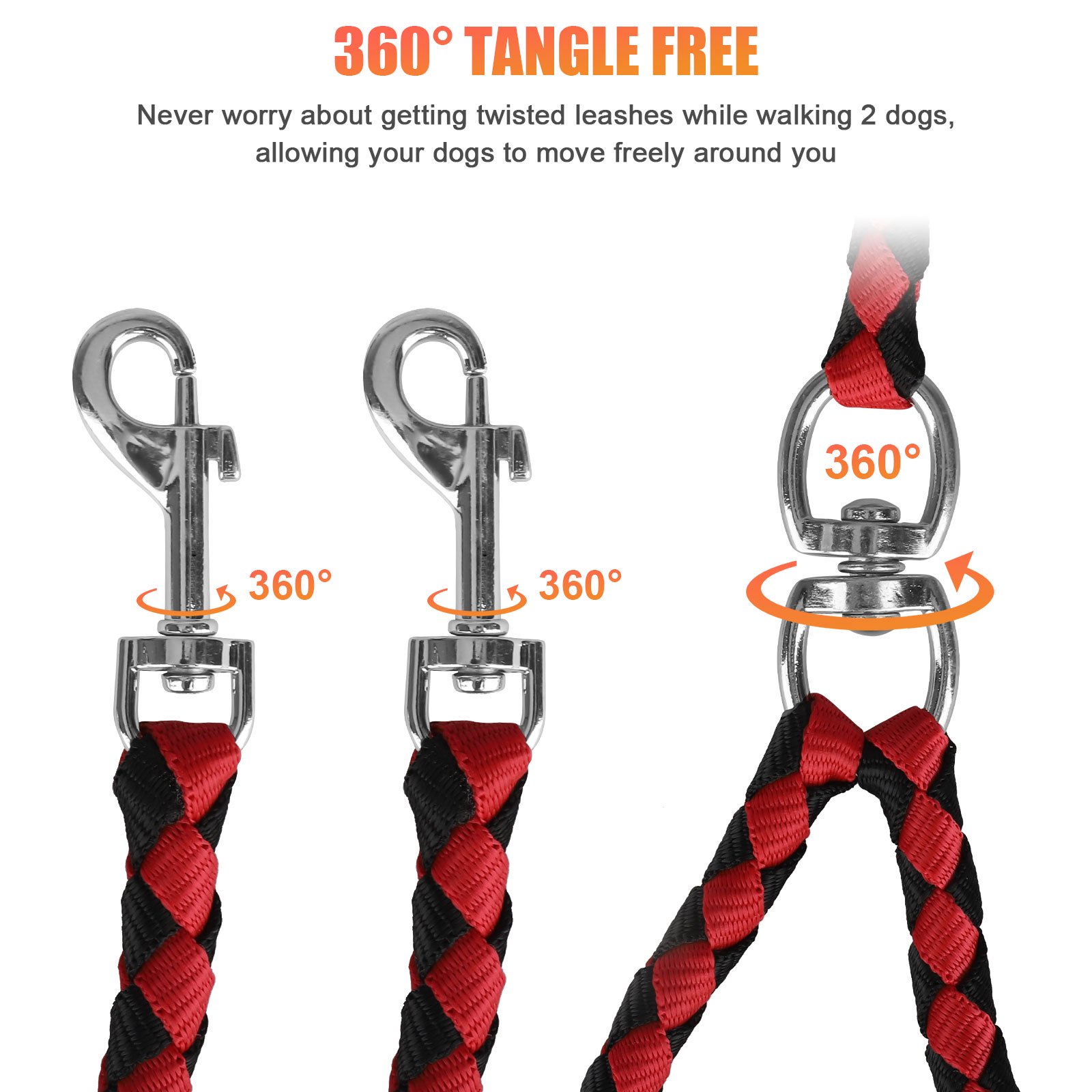 - Tangle-free design: Prevents tangling and allows for hassle-free walks with your dogs.