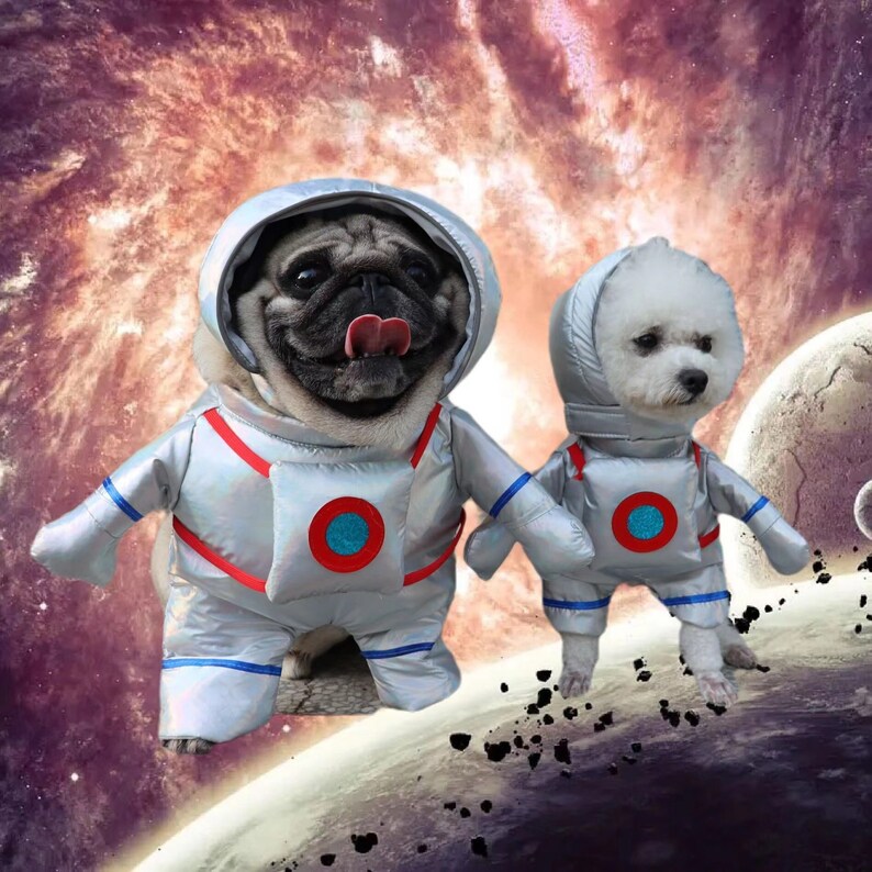 the realm of intergalactic style. Crafted with premium materials and attention to detail, it offers a comfortable and secure fit for your pup's comfort. With its eye-catching design and impeccable craftsmanship, the Astro-Pet™ Suit is perfect for capturing unforgettable moments and turning heads wherever you go. Choose from a range of sizes to find the perfect fit for your space-loving companion. Get ready to blast off into a world of fashion and fun - order your Astro-Pet™ Suit today and let your pet's style reach new heights!